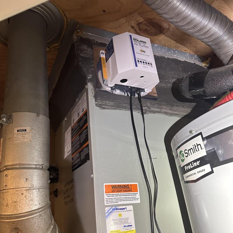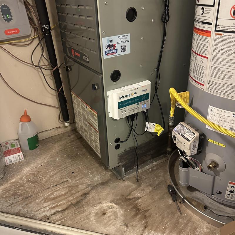 COOL GUYS HEATING AND AIR LLC installed a Solaris air cleaner with UV lights in Austin, Texas. This setup helps improve indoor air by reducing airborne particles and microorganisms using ultraviolet technology.
